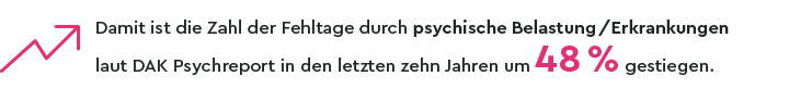 - Die Zahl der Fehltage aufgrund psychischer Belastung ist in den letzten zehn Jahren um 48% gestiegen.