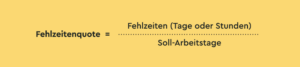 Die Fehlzeitenquote gibt an, welcher Anteil der Sollarbeitszeit durch Fehlzeiten verloren geht. Sie wird wie folgt berechnet: