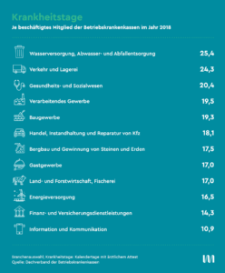 Durch die Krankenkassen werden jedes Jahr auch branchenübliche Krankenstandszahlen veröffentlicht. Diese stehen Unternehmen für den außerbetrieblichen Vergleich zur Verfügung.
