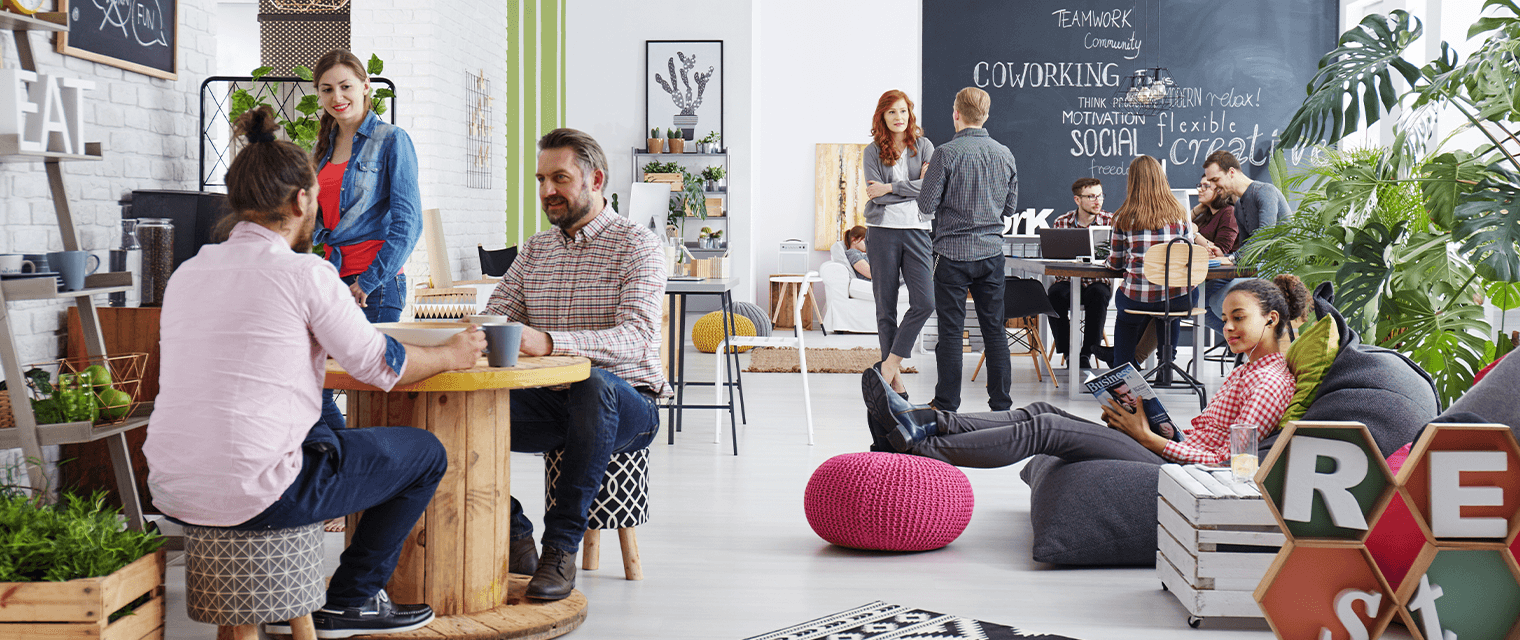 Durch die Reduzierung der traditionellen Büroräume lässt sich viel Platz und damit auch viel Geld sparen. Oder andersherum: Ein Teil der ehemaligen festen Büroarbeitsplätze kann im Büro der Zukunft anderweitig belegt werden. Für die Unternehmen sind solche Coworking-Spaces aus ökonomischer Sicht höchst attraktiv.2 Diese sollten vor allem den kreativen Austausch fördern und zu einem Ort der Zusammenkunft werden, denn das erhöht die Arbeitszufriedenheit und die Mitarbeiterbindung. Hierfür sollten speziell auf die Gestaltung der Büroräume geachtet werden. Einzelbüros sind hier fehl am Platz und hindern den Austausch. Es sollte ein offenes Areal geben mit mehreren kreativen Rückzugsorten, an denen sich Teams zusammenfinden können, um sich über Ideen auszutauschen. Das Büro der Zukunft muss sich immerhin mit angesagten Cafés, einem Strand oder dem gemütlichen Zuhause messen. Darum lohnt sich eine Investition in einen Ort, an dem Ihre Mitarbeitenden gerne vorbei kommen und direkt auf Kolleginnen und Kollegen treffen.