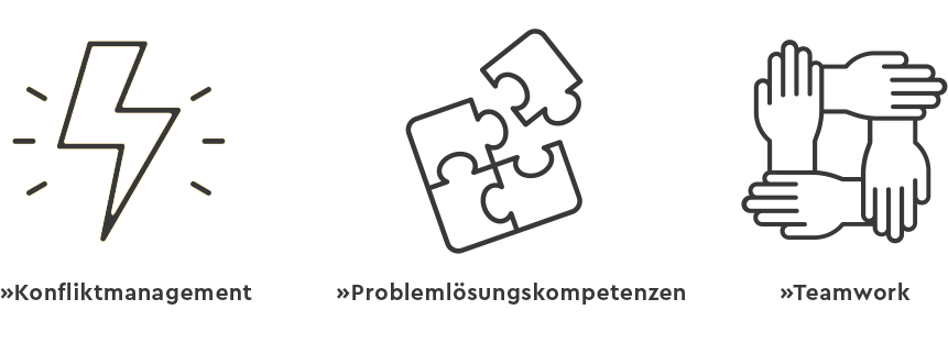 Interessant ist, dass sich die Schwerpunkte der zu verbessernden Kompetenzen durchaus unterscheiden: Die Soft Skills, die der Umfrage zufolge einen besonders großen Bedarf an Kompetenzerweiterung haben, sind: Konfliktmanagement (von 43,6 % der Befragten benannt), Problemlösungskompetenzen (42,3 %) und Teamwork (39,2 %).